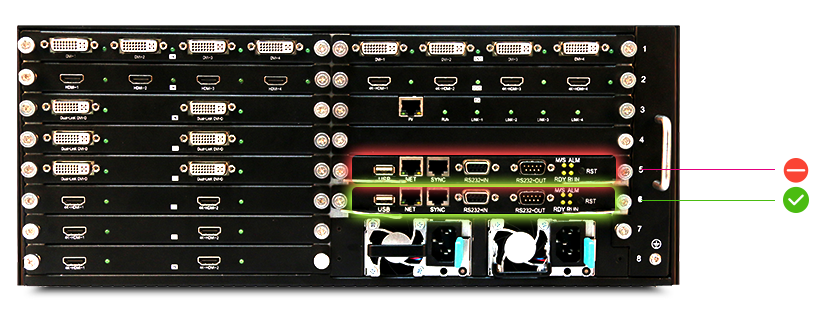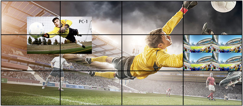 一臺設備支持不少于4組不同分辨率的拼接屏,不同組屏間信號共享,系統精簡、管控便捷。