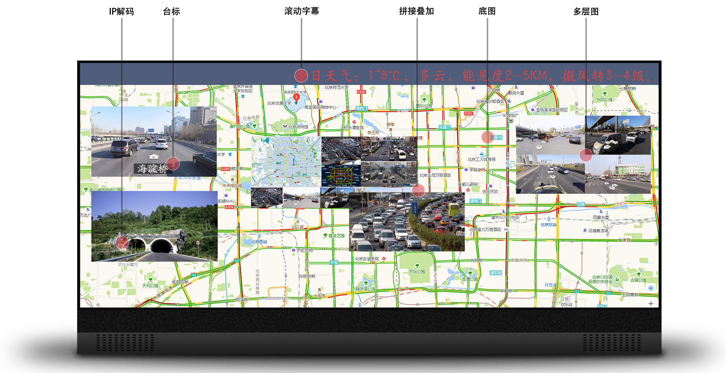 可實(shí)現(xiàn)不同類型的視頻信號在拼接屏上的多樣顯示。支持單屏8圖層、4K@30流暢顯示、IPC解碼顯示、畫面疊加、畫面分割、臺標(biāo)、底圖、滾動字幕等功能,使視頻信號更易辨別,拼接屏布局更加靈活。