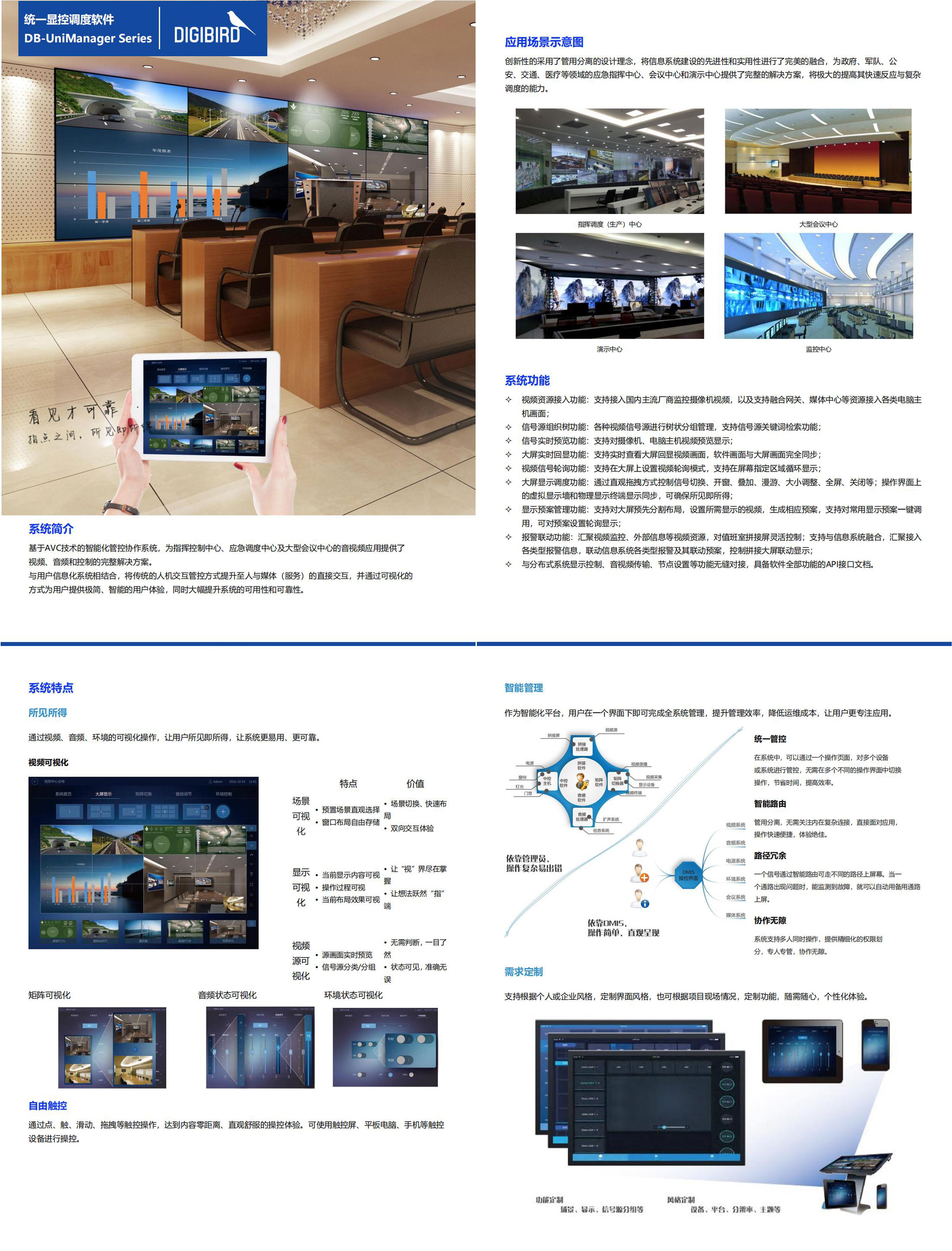 在觸控操作終端可進行拼接大屏的疊加、漫游、開窗、切換、場景調用等功能。信號圖像、大屏布局及畫面實時可視化預覽,信號快速準確上屏,提高操作效率。
